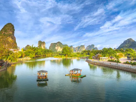 桂林(穿山塔山公園、堯山景區、一江四湖遊船、虞山公園、銀子岩景區、象鼻山)、陽朔(遇龍河竹筏漂流、陽朔西街)