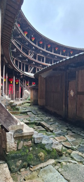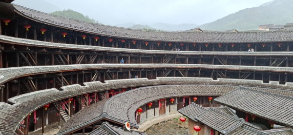 第二天行程看古樓,落下大雨,導遊哥哥拖著我𠉴長者小心行石春路,防止我們跌倒,非常感謝他!又送出土樓照片,因我們未能冒雨上觀景台,又再感謝