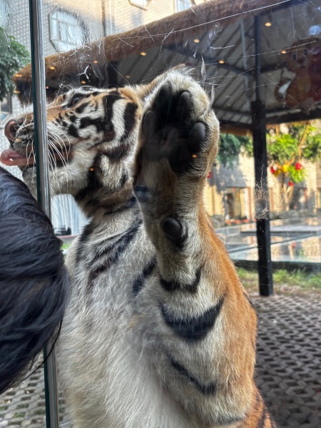 被這間老虎主題的酒店吸引了我們報名參加,酒店很新凈,自助餐的時候老虎也在旁邊吃餐,很有趣。另外動物園內可以餵長頸鹿,室內的表演也精彩,值得一看。這個團的高鐵是由西九到廣州再轉旅遊車去肇慶和廣西的,如果高鐵是直接到肇慶便更好了。