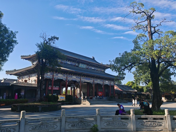 粵暉園是嶺南園林中比較難得的規模龐大的古典私家園林,是嶺南園林的代表之作。粵暉園以東江河水道為軸線,整體佈局精妙,建築也很有氣勢。從東正門進入後可以看到園中的核心景點,超大幅磚雕“百蝠暉春”,雕工非常精美。這裡同時也是一個攝影基地,有機會的話還能看到劇組拍戲的情形。