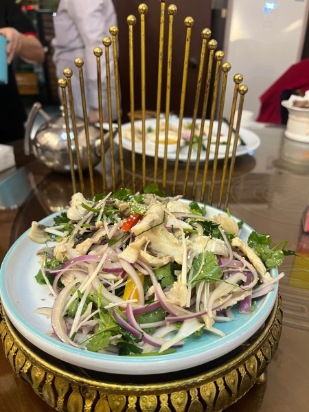 1) 黃錦煊導遊非常友善,好好人,好多嘢講俾我地聽,值得讚賞。 2) 膳食非常非常好,好食,酒樓都乾淨,環境好有派頭,好高格調。 3) 脆肉鯇本來好正,可惜我們不吃辣,佢撈咗 wasabi, 希望佢有一半份量不撈 wasabi 4) 曹邊村冇嘢睇,何不去酒樓旁邊有一個 AAAA 級的文化村?就在酒樓旁邊。雖然要 $60 入場費,但我寧願自付$60 都不去曹邊村。 5)好彩黃生好人帶我們第三天加去孫中山故居,否則去完曹邊村都冇嘢做等幾個鐘才上船。