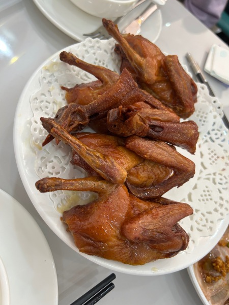 在颱風暴雨下,順利踏上這次<佛山+東莞>的美饌之旅。 首天在佛山有兩餐私房菜, 都各有特色。午餐是《英姐夠料》私房菜,不可錯過的有:花開富貴有米魚開花過橋、 香茅菊花無骨鱔。老闆娘英姐好客親切,忙著招待我們,又熱情替大家拍照留念。 晚餐在百年碉樓《年豐樓》內,享用順德手工私房菜,別具風味,還有每一道菜都色、香、味全,我特別欣賞的有脆皮糯米雞、將軍鵝、煎魚餅、花椒蒸牛。 住宿是新落成的佛山Wyndham溫德姆酒店,房間大而整潔;只是早餐的餐廳比較細,我們那天賓客尚算少還可以,若是旺季,恐怕人滿就要賓客等候了。 第二天的午餐是重點美饌,堂做金湯石鍋翅(位上)+黃金鮑魚扣鵝掌(位上),我超喜歡就是熱辣滾燙的石鍋翅🥰,現場看着師傅堂做,美味加分!還有甜品原隻木瓜燉雪燕😋,我都極之欣賞! 導遊唐海蓮盡心盡責,為團友謀求最佳的款待,抵讚!今次的旅遊體驗,整體非常滿意👍