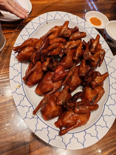 五穀雜糧燴魚翅(位上)+金牌紅燒乳鴿(每人半隻)