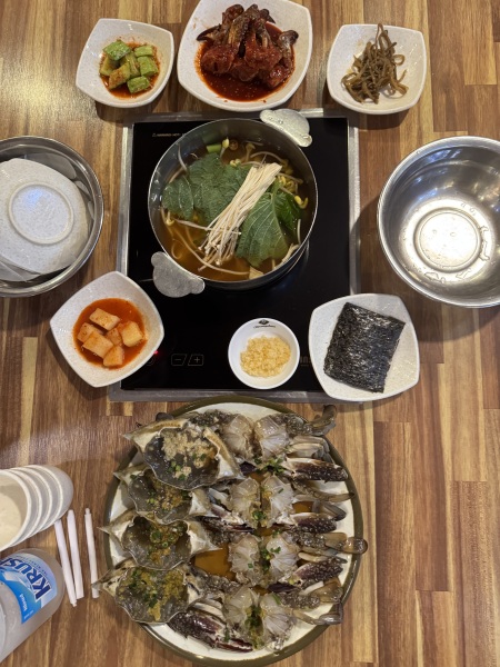 28/10晚餐食醬油🦀,我個人認為不是每隻🦀都新鮮,大多數不太新鮮。這圖我們隔籬的預訂坐位,我們食完晚飯至上旅遊巴,都未見有客人,我所見🦀最少已放了1小時多, 新鮮即食🦀應該是在我們到達時先放上枱,而不是每張枱上都是🦀這樣等客人來,直到我們走其他枱都冇客人入座,,🦀是放在枱上等客人。當日天氣有點熱。原來是新鮮🦀都變質了👎: 平時食放題,新鮮🦐可以直接放入口,但有點不新鮮,好自然會吐出來,但見到枱面上的🦀,我只想煲熟自敢食,好彩佢哋有個煲🦀,唔係食完果餐都要去夜宵😉 我老公就會是🫣,食完有事就當清腸胃。 提議在客人到達坐低,先把🦀拿出枱面來。 如果🦀放着的客人來,天氣轉熱,就會易變壞。 31/10晚餐是🦀放题,熱食就岩我,😋 整個行程最👍🏻就是炭燒韓牛😋 當地導遊Fiona, 的贴心安排、講解及推介我们的薯仔豬骨煲, 令我們旅程尾聲大滿足🥳 這個團食物品種豐富🐔🦀🐮🦀🐷每天都食得精彩🤩🥳 最貼心的Nancy, Fung 除了每天有貼心WhatsApp提醒行程要注意事项及在我们下車時總给我們扶手👍🏻