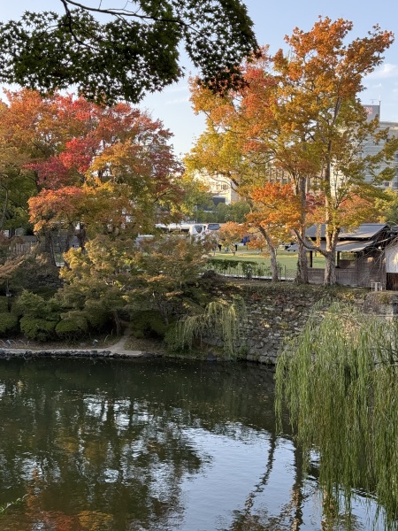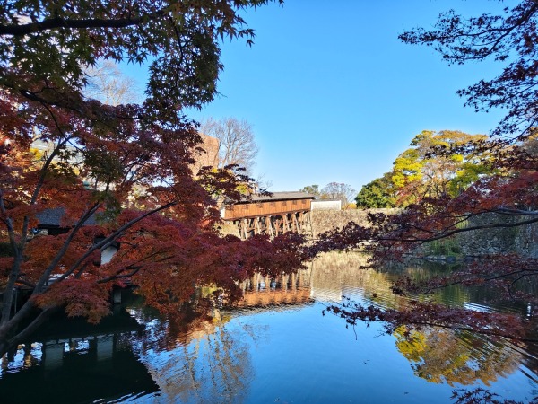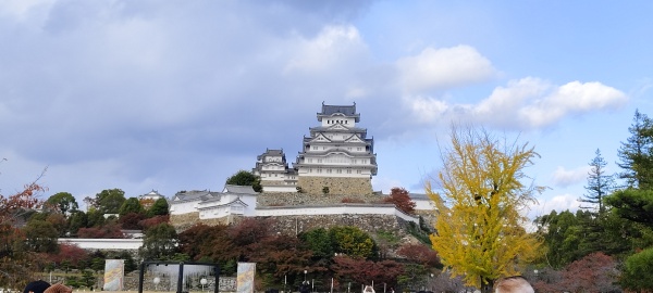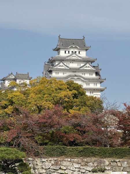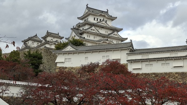 • 姬路城~外觀像一隻展翅欲飛的白鷺,故也稱「白鷺城」。每到秋天,姬路城周圍的庭園與護城河沿岸便被繽紛的紅葉點綴,為這座純白的「白鷺城」增添了一層優雅浪漫的秋日氣息