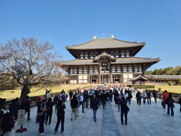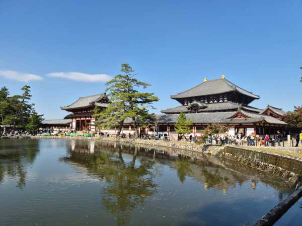 • 東大寺~建有全日本最大的古銅大佛,而佛殿更是全世界最大的木造建築物;隔著大佛池遠望過去,大佛殿在樹叢間若隱若現,加上可愛的小鹿與紅葉,是秋天限定的特別風景。