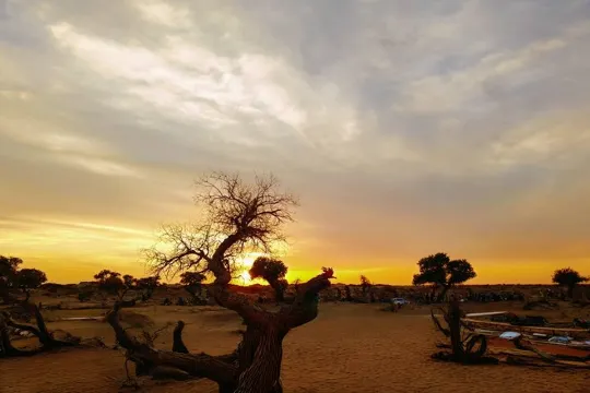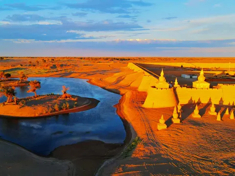 額濟納旗金色森林~胡楊林、遊覽一至八道橋、大漠胡楊、黑城弱水胡楊風景區、怪樹林日落、沙坡頭、沙湖遊船、四驅車三湖穿越及航拍、七彩丹霞、蒙古特色烤全羊及開羊儀式
