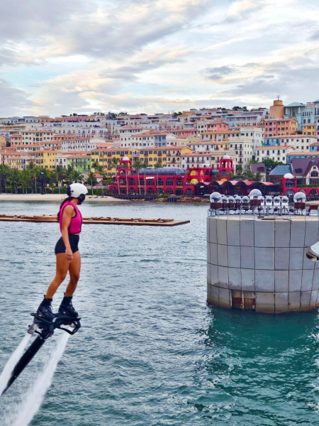 黃昏時分抵達,乘貢多拉船遊河,兩岸燈光亮起,簡直如夢似幻!沿途餐廳、小店林立,打卡位一個接一個,Ken還幫我們搶了好位置看夜間表演,真的太完美。 3. 太陽世界香島自然公園