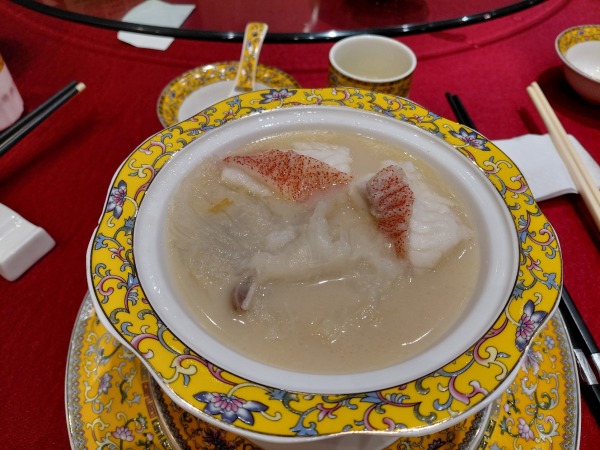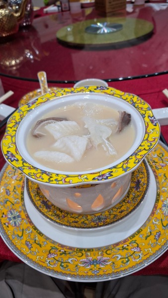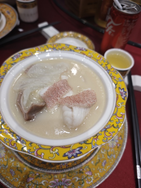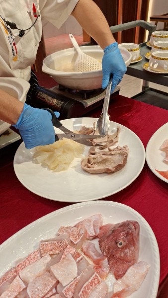 白玉藏珍豬肚包魚翅+過橋東升斑(位上)