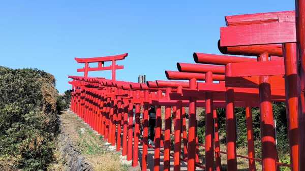 • 到訪山口縣的元乃隅神社,被CNN評選日本最美絕景之一,有著123座延綿不絕超過100米的鮮紅色鳥居矗立在崖邊,由鳥居架起的隧道,在碧海藍天中顯得更為亮眼。