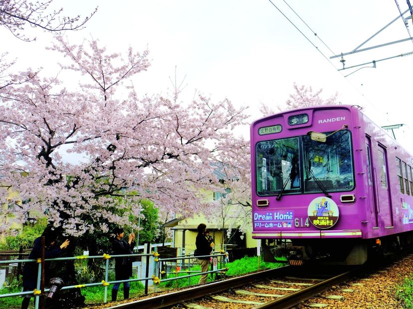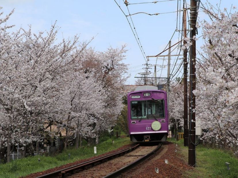 • 期間限定,乘搭嵐電櫻花列車穿梭夢幻櫻花隧道,沿線兩旁皆是盛開的櫻花。列車行駛時,染上粉紅色的風景在眼前展開,花瓣隨風飄舞,令人歎為觀止。(3月28日至4月10日出發適用)(註3)