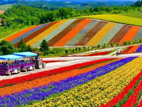 富良野~富田花園、美瑛~四季彩の丘(包乘坐四季彩Norocco號觀光車)、登別Marine Park海洋城堡~企鵝巡遊、洞爺湖展望台、「日本最北的不凍湖」支笏湖、千歲三文魚故鄉、浪漫小樽運河、狸小路購物大道、北廣島三井Outlet Park、2晚溫泉酒店