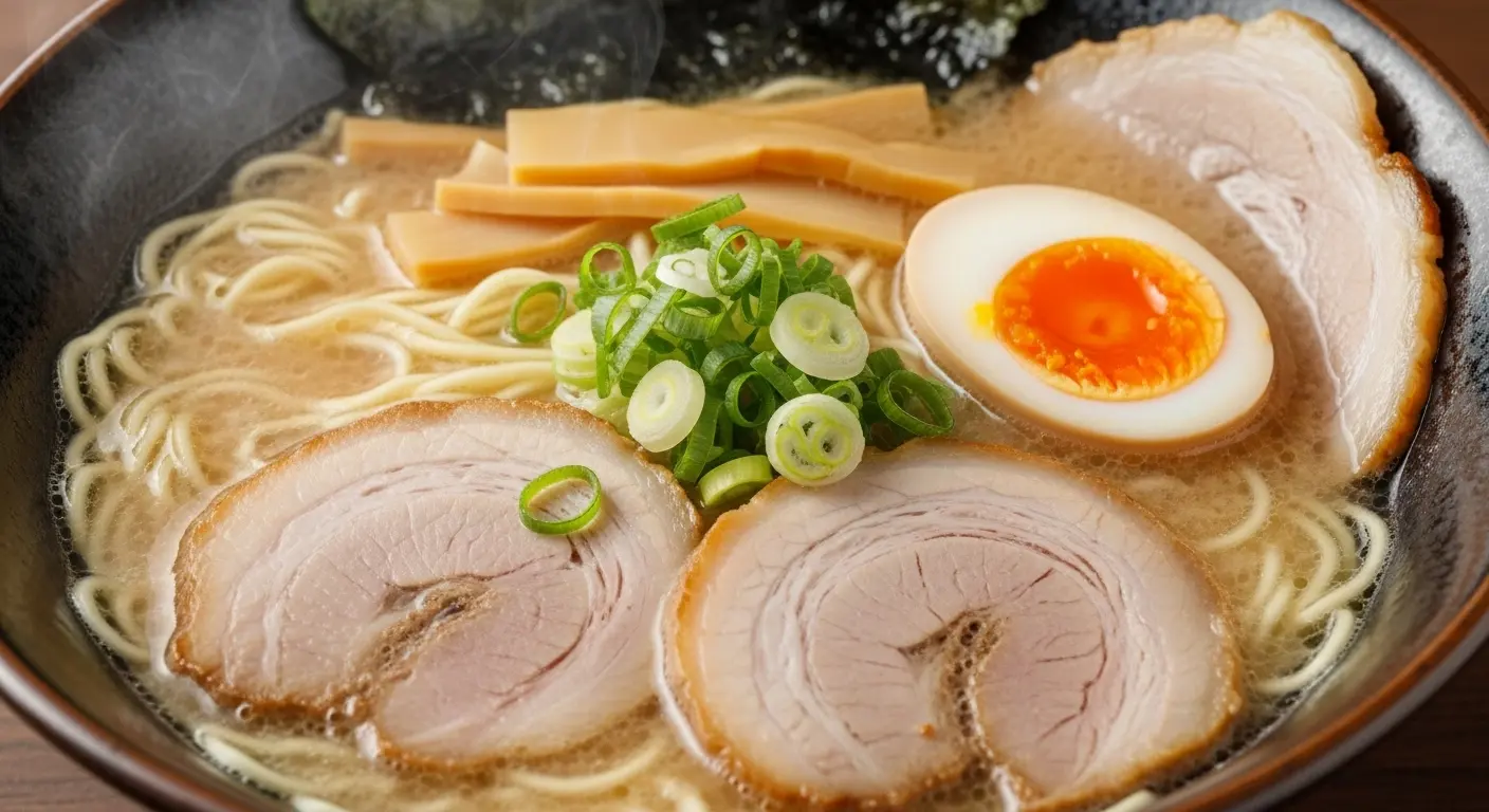 1. 豚骨拉麵 (Tonkotsu Ramen): 嚟到福岡,點可以唔食拉麵?作為豚骨拉麵嘅發源地,無論係大名鼎鼎嘅「一蘭」總本店定係「一風堂」,都值得你親身朝聖。