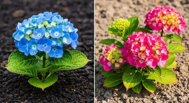 • 鹼性土壤 (pH > 7): 花朵呈現紅色或粉色
