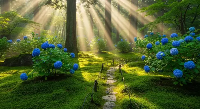 每年的6月至7月,當櫻花季落幕,日本便迎來了梅雨季。雖然細雨綿綿,但這正是日本另一種國花——繡球花(日語稱紫陽花)盛開的季節。2026年的日本,預計將迎來一個色彩斑斕的初夏。不同於櫻花的短暫絢爛,繡球花在雨中更顯嬌豔,從深藍到淡粉,將日本的古寺、鐵道和庭院裝點得如詩如畫。