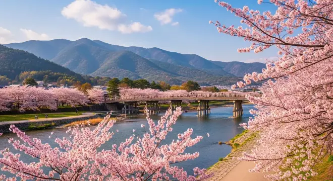 • 詳細介紹:橫跨桂川的渡月橋,與兩岸成排的櫻花樹交織出經典的京都春日風景。建議您早晨前往漫步,或預訂浪漫小火車,穿梭於如夢似幻的櫻花隧道中。