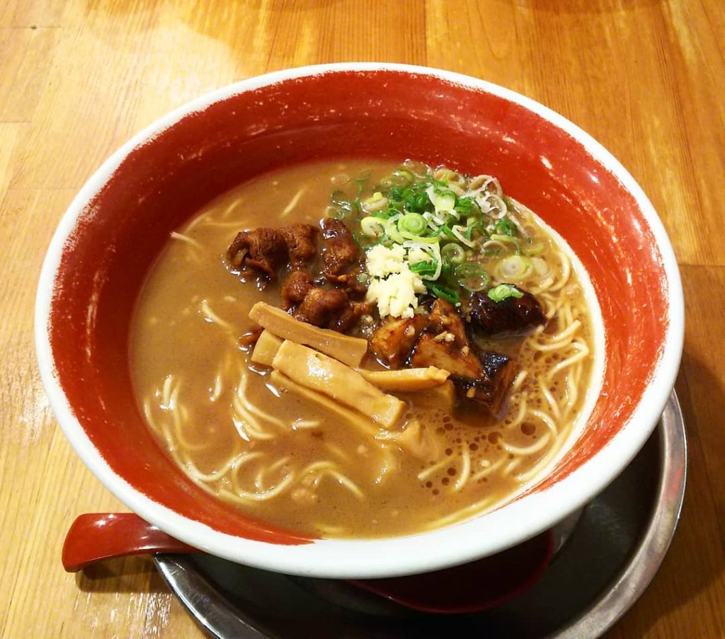 店家採用豬骨加上濃厚的醬油作為湯底,呈深啡色的湯頭非常適合重口味人士,配上粗麵條讓口感更加得以提升。另外店家亦有提供免費自家製辣芽菜,配上拉麵可說是天衣無縫的絕配。